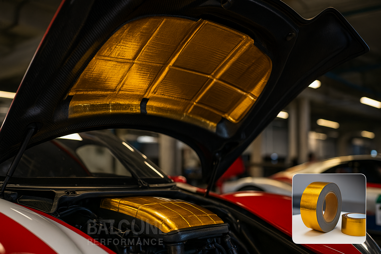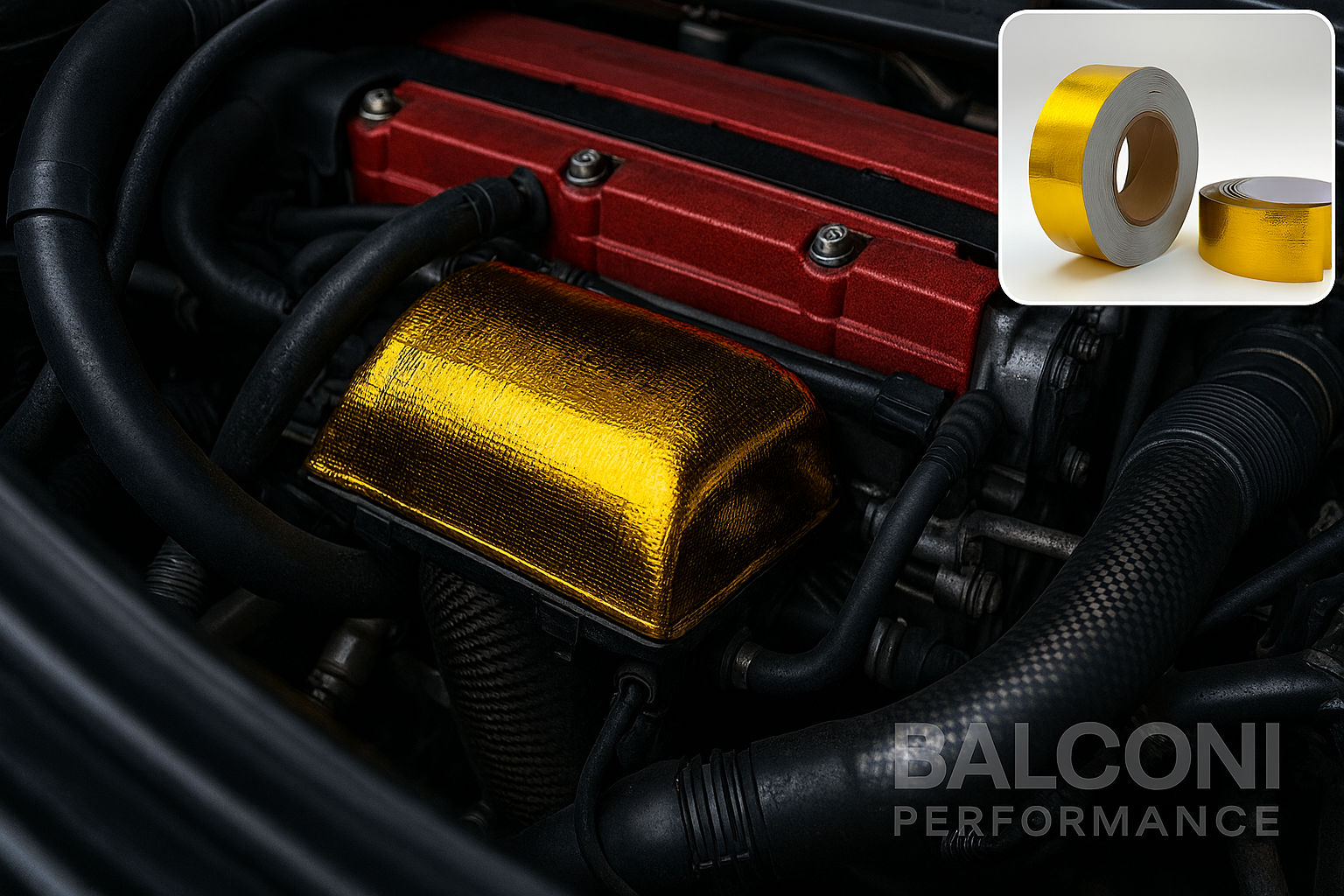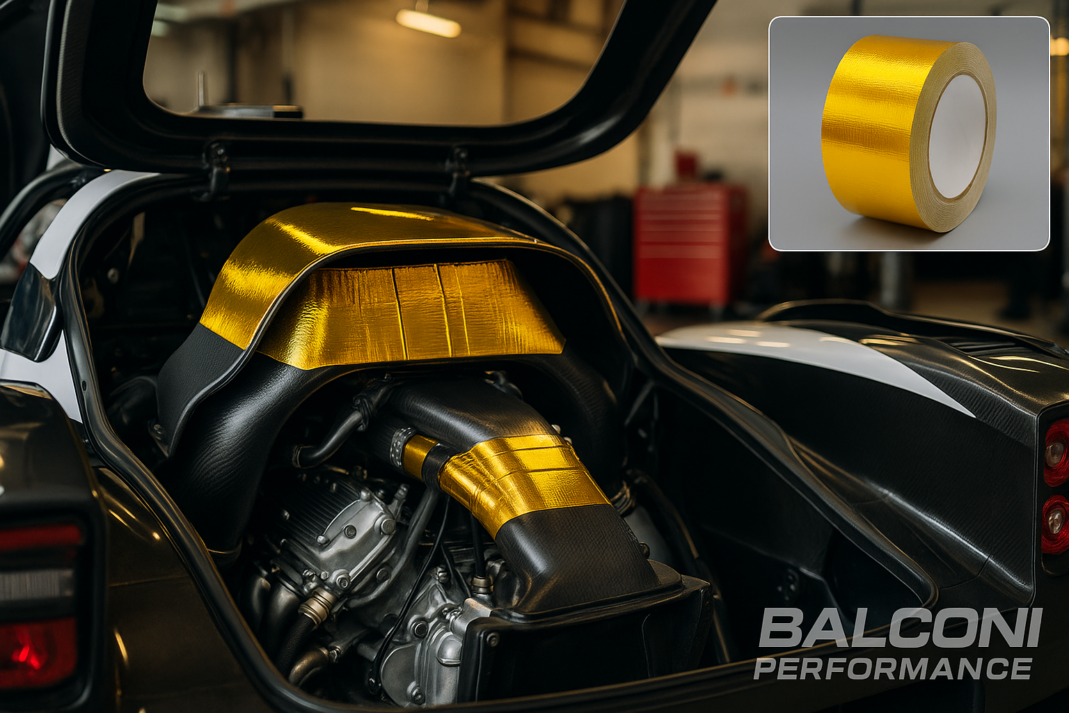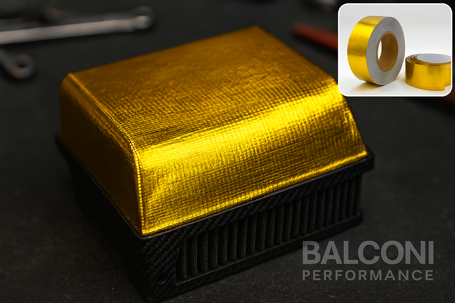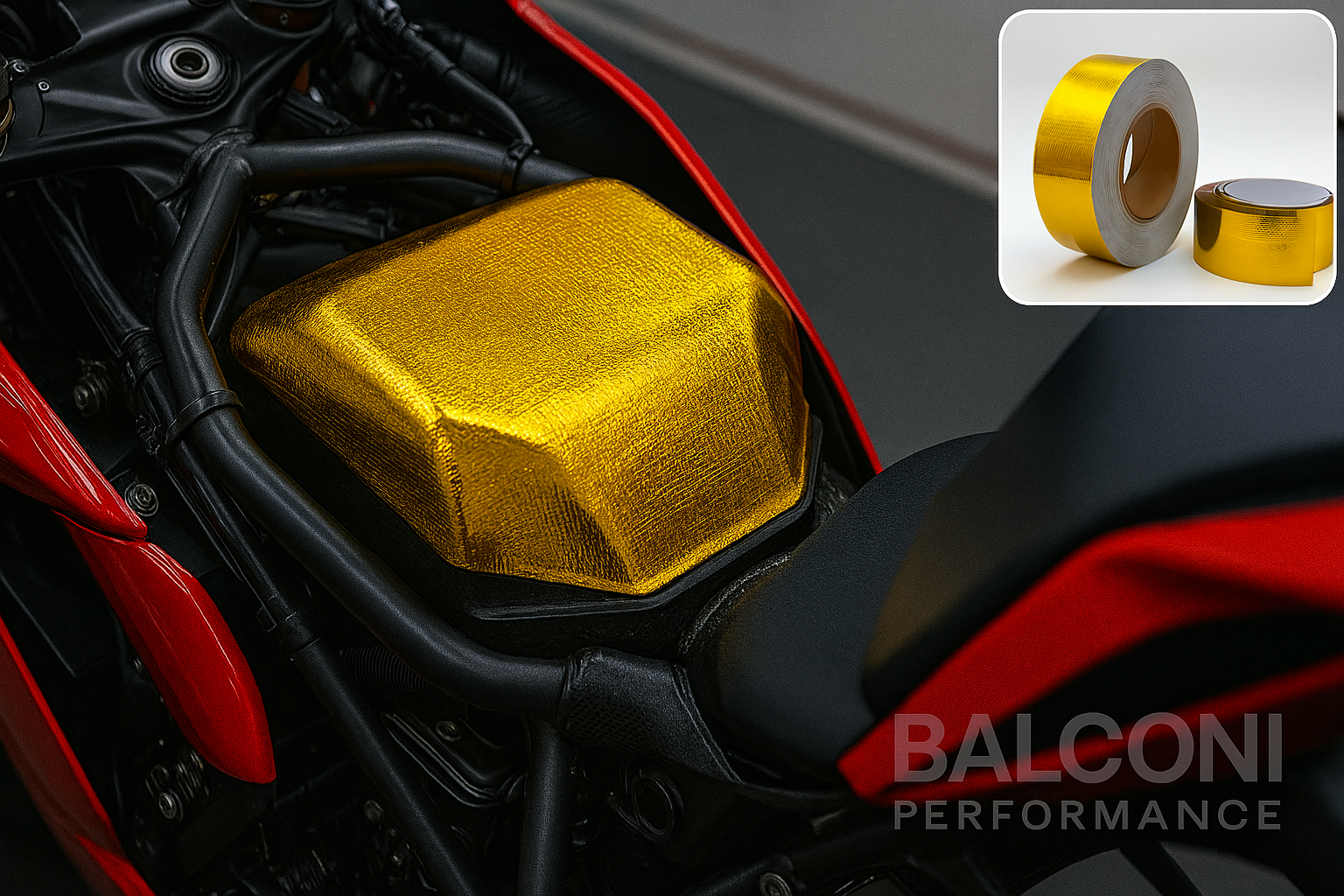 Balconi Performance presenta il NASTRO TERMICO ADESIVO “BP GOLD TAPE”. La soluzione definitiva per proteggere componenti, condotti d’aspirazione, pannelli, vani motore, parti di carrozzeria e scocca di automobili e motociclette.